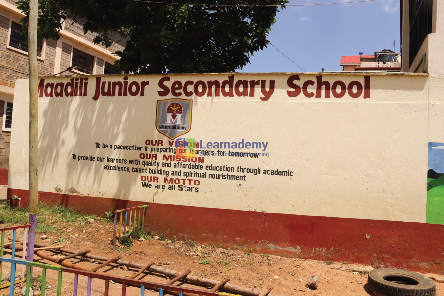 Maadili School was founded in 2011 and is located on Kenyatta road, Juja Kenya. The school offers a holistic learning environment based on the Competency Based Education(CBE). The school is a Grade 1–9 institution.